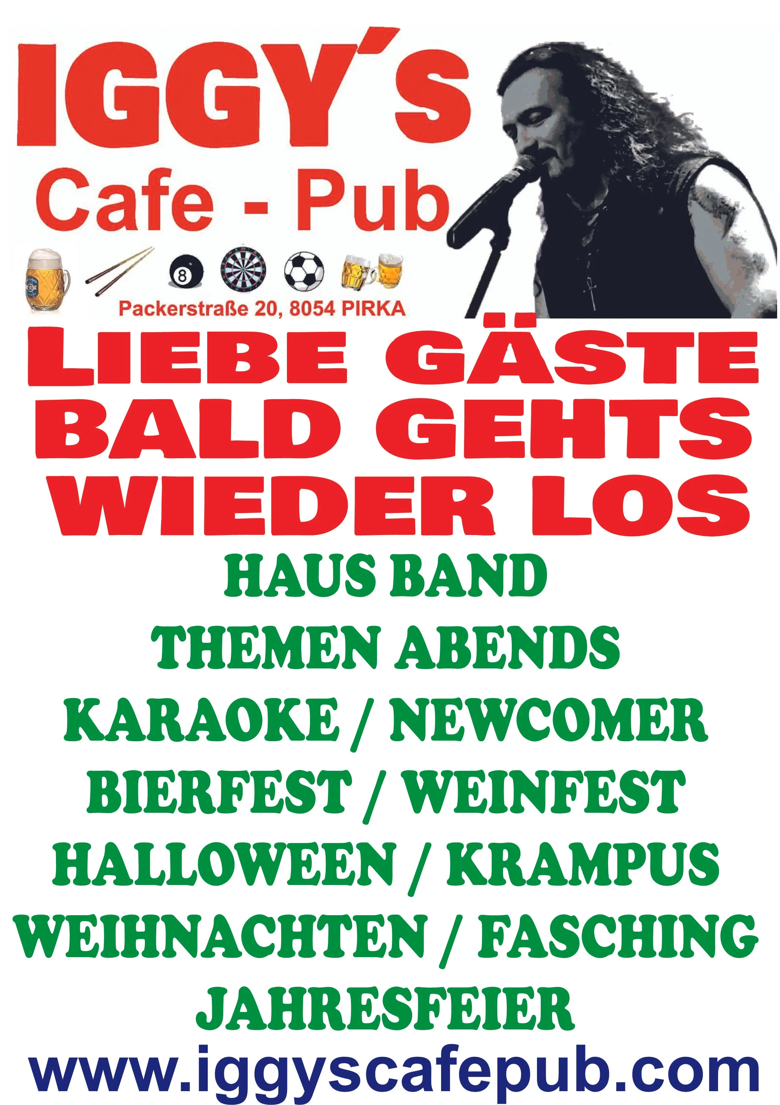 Wir haben: Dart Tourniere, Schnaps Tournire, Fridays Live Musik Events, Karaoke Party, Krampuslauf, Halloween, Fasching Party, Jahresfeier, Iggy´s Birthday Bash, etc…..